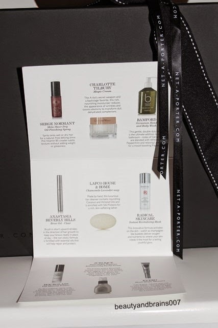 The name itself explains the origins of these boxes. It was created by NET-A-PORTER beauty team and is still available on their site- here- for 37.50 GBP, which might seem a lot, but if you count everything inside, it is not even close to its full price if everything was sold separately. You must also count the 20 Euros shipping cost which wasn't a problem for me because I chose to buy the box while purchasing some other things from the sale (beauty items on NET-A-PORTER were never on sale until now), but there's a chance that they will soon have a free shipping period, at least it was like that last year.